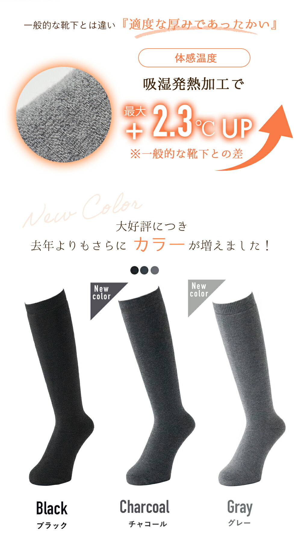 | ホカロン靴下 ハイソックス | ![]() ・赤外線発熱ファイバーであたたかい ・22.5cm~25cm |