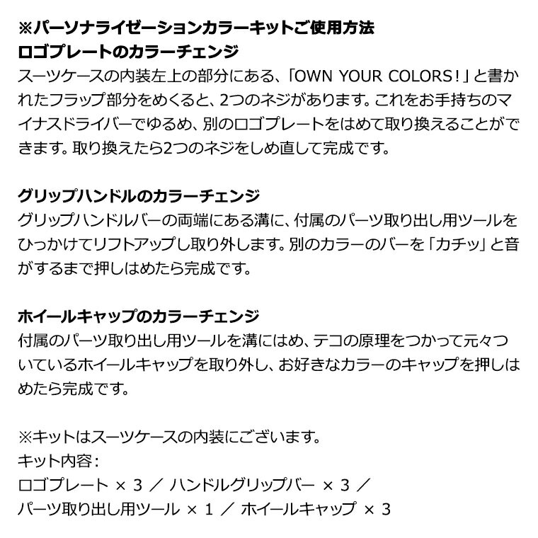 全サイズにエキスパンダブル機能を搭載し、旅先でお土産が増えても収納容量アップが可能になります。